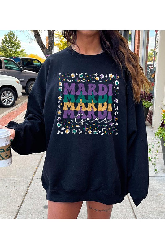 MARDI GRAS,BEADS,FLEUR DE LIS,LEOPARD UNISEX FLEECE SWEATSHIRT,GRAPHIC TEE,GRAPHIC TSHIRTS,TSHIRTS,TEES